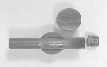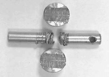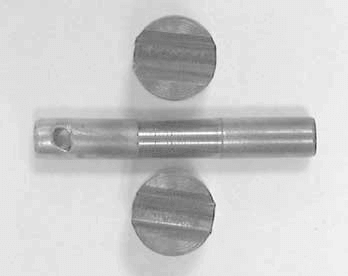 Lack of resistance to galling has been a severe failing of austenitic stainless steels and has been widely reported. A Faville Test was utilized to evaluate the galling resistance of each sample. In this test, a shaft is rotated at 330rpm while being held in a pair of jaws with a closing force of 707 N. The following photographs show the shaft and jaws after testing for three conditions: untreated (figure 7), conventional