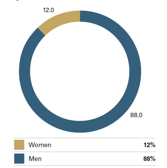What is our gender balance? Our overall UK workforce in the period under review constituted 88% men and 12% women.